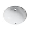Caxton Undercounter Lavatory Sink Caxton has a simple, streamlined design that's as versatile as it is attractive. This easy-to-clean sink combines the sleek look of an integrated basin with a timeless design that suits both traditional and modern bathroom decors. Caxton creates a sleek transition from the smooth oval basin to just about any solid-surface countertop. Exterior dimensions: 21-1/4-in L x 17-1/4-in W Interior dimensions: 19-in L x 15-in W Constructed of vitreous china Faucet not included No faucet holes Unglazed bottom of bowl