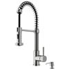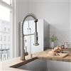 The pull-down, dual action spray head on the VIGO® Edison Pull-Down Spray Kitchen Faucet allows for your choice of aerated flow or powerful spray for all your modern kitchen needs. The 360° swivel spout extends up to 30", and its spiral details and solid brass construction make it a highly functional and beautiful statement piece. Features a matching soap dispenser to bring added functionality to your kitchen remodel.