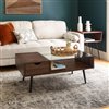 Walker Edison Modern Wood and Glass Coffee Table with Drawer - Dark Walnut is rated