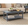 - Distressed finish coffee table offers farmhouse-style and functional design