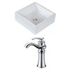It features a square shape. This vessel set is designed to be installed as an above-counter vessel set. It is constructed with ceramic and it comes with an enamel glaze finish in white colour.