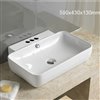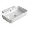 This rectangular sink features a ceramic construction and is designed to be installed as a above counter vessel. This vessel comes with a white enamel glaze finish. This product is for a 3h4-in. faucet.