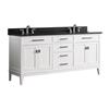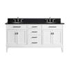 Madison 72-in Bathroom Vanity with Counter Top and Sink The Madison 72-in vanity combines function with style. The vanity is designed with strong attractive lines. It is constructed of solid wood and veneer, with soft-close door hinges and drawer glides. The vanity comes with a countertop, backsplash, and dual white vitreous china undermount sinks. Adjustable shelf Top pre-drilled for 8-in widespread faucet Adjustable height levelers