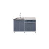 This outdoor kitchen cabinet includes one sink cabinet with 2 doors and one cabinet with a drawer and 2 doors. It also comes with the standard size stainless steel top and adjustable feet. Drawers and doors are equipped with a soft close system.