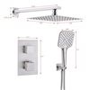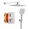 - The complete shower system includes: stainless steel shower head, ABS hand shower, brass thermostatic valve, shower arm and shower hose