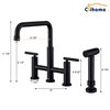 Clihome Matte Black Pull-Down Double Handle Kitchen Faucet With Sprayer