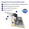 - Skylight utilizes maintenance-free white vinyl base frame with an integrated 4-sided gutter (our Condensation Control Technology) to collect any condensation caused by Canada’s extreme climate