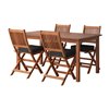 This hardwood patio dining set is the perfect gathering spot for your alfresco dining space! Showcasing a classic silhouette with its slatted tabletop and backrest, it brings a classic coastal feel to any patio. The table is equipped with a 2-inch drilled umbrella hole to temper those too-sunny days and the chairs fold up for easy storage. With its four matching chairs, it's perfect for patio dinners, poolside cocktails, or even an impromptu work-from-home option!