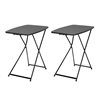 Enhance your living area, dormitory room, or poolside lounger with the Cosco 18 x 26-in adjustable height personal folding table. Made to complete your multipurpose needs, this collapsible product is not only perfect for indoor use but can be put to the test with your outdoor entertainment needs to give you peace of mind. Built with a polypropylene tabletop, the table can handle all manners of food, drinks, homework assignments, and other activities up to 30-lb. Its powder-coated steel frame makes the table a durable and heavy-duty product which promises to be a long-term purchase for all ages with its 3 height options. Rubber leg tips featured with the table prevent slipping on all floor surfaces and protect them from all types of damage when in use. This folding feature not only promotes small space living but guarantees non-invasive storage as you place it in closets or under a couch. The table is sold as a 2-pack.