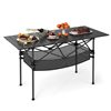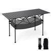 Costway 4-ft Patio Folding Camping Table with Aluminum Roll-up Tabletop and Mesh Basket - Black