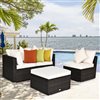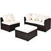 Costway Brown Metal and Rattan Frame Patio Conversation Set with White Cushions Included - 4-Piece
