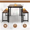 Enjoy delightful dining time with family and friends with this 3-piece dining table set with a dining table and 2 benches. Combining elegance and practicality, this 4-person dining table set with a modern appearance would bring the perfect aesthetic to your space. The table set is supported by a powder-coated steel frame that not only increases the rust resistance but also increases stability, ensuring long-lasting durability. The weight capacity of the dining table is 110 lb, and the weight capacity of each bench is 330 lb. You can push the two benches under the table to maximize the use of space. And with the detailed instructions and assembly video, you can assemble the table and benches easily.