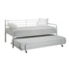 Beautifully crafted with a sturdy frame, DHP's striking twin-size Metal Daybed features curved stylish lines with simple styling. Add the matching trundle bed underneath for extra sleeping room when guests arrive (trundle bed sold separately).