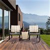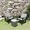 This attractive rustic-style outdoor conversation set, looks like real wood with a beautiful brushed finish. It is crafted from highly durable polypropylene weather resistant and UV protected material so you can enjoy the advantages of full weather and water resistance, no colour fading, no rust, and its 100% maintenance free. It is easy to assemble and there are no special tools required. This patio furniture is effortless to move around and easy to store away, it includes two armchairs and one coffee table with convenient storage space for essentials and serves as additional seating. Enhance your home with the comfort and design you deserve.