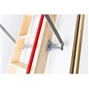 The FAKRO LWF fire-resistant attic ladder provides easy access to the attic while functioning as a blaze block in case of a fire. The hatch is manufactured with fireproof materials, equipped with a peripheral seal that expands under extreme heat. The LWF attic ladder is 30 minutes fire-rated as per QAI. This three-section folding attic ladder is equipped with a lock, opening rod, safety handrail, ladder ends, and anti-slip treads. The hatch is supported by springs that run parallel to the door, keeping the entrance to the attic clear of hardware. The outside of the hatch door is cherry red and can be painted with a fast-drying paint to match the finish of any ceiling colour. Suitable for areas that require 30-minute fire-rated attic access. Fully assembled and ready to install.