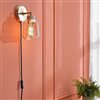 The modern design of Globe Electric's Salma plug-in or hardwire wall sconce stands out in any home. The clean shape and smoke-tinted amber glass of the bell shade softly distributes light. A matte brass finish and a black cloth cord complete the modern glam motif. Perfect for placing on either side of your bed, above your sink in the kitchen, or above your couch in the living room as a stunning statement piece. Plus, you're not restricted by the need for an existing hardwire connection – simply use the six-foot cord to place your sconce anywhere there's an outlet.
