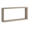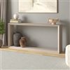 Striking in its simplicity, this 64-in modern console table emphasizes clean lines and straightforward design. The table's seamless design is given an extra dimension with the bevelled banding around the edges. The solid base anchors the look, while the natural wood-look finish adds texture and tonal variation to your space. With an assembly time under 20 minutes, this is the perfect piece to effortlessly update your living room, family room, or office.