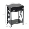 Do you need some more storage in your bedroom or other living areas? This HOMCOM side table with storage is here to help you. Equipped with an open shelf and a drawer provide plenty of storage space. You can use it in the bedroom or living room to store your books, cup, and other necessities. X-shaped metal bars and adjustable foot pads make the table more stable.