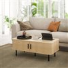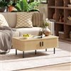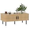 HOMCOM Nordic Style Rectangle Coffee Table with Storage with Sliding Doors - Light Brown Oak
