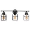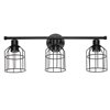 Refresh your space with this clean-lined vanity light. It features a circular back plate and a simple yet sophisticated clean-lined bar in a smooth black finish. This fixture is accented with open wire cage shades for maximum bulb exposure. Hang beautifully not only in your bathroom, but will fit just right near a reading nook, foyer entrance, or space of your choice.
