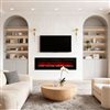 Upgrade your space with this versatile electric fireplace featuring dual installation options—recessed or wall-mounted—for a clean, space-saving design. Enjoy customizable ambiance with 26 flame and ember bed colour combinations, adjustable heat settings, and independent flame operation for year-round use. Equipped with full LED technology, LCD display, remote control, and built-in overheat protection, this fireplace delivers warmth, style, and safety in one sleek unit.