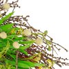 - Accented with long natural twigs and small yellow flowers