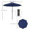 Outsunny 9-ft Outdoor Solar Patio Umbrella w/ Lights - Navy Blue