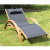 Outsunny Black Textilene Fabric and Wooden Lounge Chair with Headrest