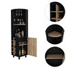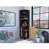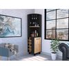 Its thoughtfully designed interior offers dedicated storage for bottles, glassware, and bar accessories. The upper open section includes a hanging stemware rack and display shelf, while the lower cabinet provides concealed storage behind a hinged door. Integrated wine cubbies allow bottles to be stored securely and within easy reach, keeping everything organized and accessible. Perfect for compact spaces or as a statement bar piece, the Kaia Corner Bar Cabinet maximizes vertical and corner storage without overwhelming the room. With its balanced blend of style and practicality, it is an ideal solution for creating an inviting and organized entertaining area.