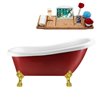 Streamline 28W x 61L Glossy Red Acrylic Clawfoot Bathtub with Polished Gold Feet and Reversible Drain with Tray