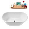 Streamline 55 L x 27.6-in W Glossy White Acrylic Round Freestanding Bathtub w/ Matte Black Centre Drain and Tray
