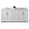 Vanity Art 72 W x 22 D x 34-in H White Double Sink Bathroom Vanity w/ White Engineered Marble