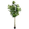 Vickerman 10-ft Artificial potted Fiddle Tree. Elevate your indoor decor with the 10-Foot tall potted Faux Fiddle Tree with 184 leaves by Vickerman and enjoy a touch of nature in your home or office. This faux fiddle leaf fig tree is a stunning accent piece for your home decor, featuring realistic features and intricate details that make it stand out. Its vibrant green color is perfect for adding a pop of color to any room. Designed to fill empty corners and enhance your space with greenery decor, this tall faux plant is perfect. The artificial floor plant is maintenance-free, so you can enjoy the beauty of the fiddle tree without having to worry about watering or pruning. A simple wipe with a dry cloth is all you need to remove any dust. Ideal for indoor use, this faux fiddle leaf fig tree is perfect for adding some natural charm to your decor. Whether you're searching for a tall fake plant, greenery decor, or artificial indoor trees, this faux fiddle leaf tree is the perfect choice to add natural charm to your interior decor.