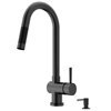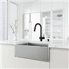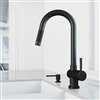 A sleek cylindrical design and contrasting textures create an exceptional kitchen faucet with the Gramercy by VIGO. It provides a sleek silhouette with a tall gooseneck while the high arc ensures plenty of space for washing large pots and pans. A premium matte black finish adds elegance to its design and provides a lifetime of brilliance. This versatile single-handle kitchen faucet adds modern sensibility to any stainless steel or farmhouse kitchen sink. The included Bolton soap dispenser with an easy to fill above counter design completes your kitchen workstation and provides a lifetime of multifunctionality.
