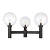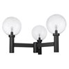 - Simplicity plays it cool with a bit of linear style. A black finish aluminum frame makes a stunning venue to host three delicate clear seedy glass globe shades, creating an artistic and festive look.