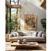 Make an impression with light that feels intentional. The Dennison sixteen-light chandelier in signature brass balances warmth and geometry in a way that instantly elevates the room. Its open design brings air and glow to modern, coastal, or urban interiors.