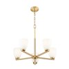 This five-light chandelier blends a modern gold finish with glowing matte opal glass for a look that’s both radiant and relaxed. The ribbed shades give the piece a subtle texture while softening the light with sophistication. It’s the perfect blend of structure and warmth for elevated interiors.
