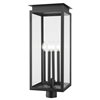 Upgrade your deck or patio with this transitional 4-light outdoor post mount light fixture. Its squared lantern silhouette imparts clean, classic flair, while a timeless coastal black finish offers excellent durability. Candelabra lamping is accessed with a latching glass door, while a layered cap and stepped trim offer the perfect dose of dimensionality.