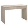 Cultivate on-trend modern style in your home office, game room, or vanity area with this 48-in desk. The bevelled sled base and tabletop create a crisp, modern look, topped with a sturdy MDF desktop. This desk features two flat-front soft-glide drawers for storage, while the open lower space provides plenty of room to settle in and take on the day. It’s time to work from home in style!
