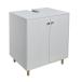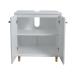 This under sink white storage cabinet will offer the perfect size when you need to be thrifty with your space. The storage vanity has a spacious home for your restroom belongings and utilities. It has two doors equipped with a soft-close door mechanism to make your life easier and to prolong its durability, while having smooth handles to give it an elegance touch. Let's not forget its four wooden legs that will maintain stability and still give you the cute look you need in your restroom.