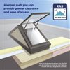 The Columbia Skylights roof access hatch is made from high-quality materials that are designed to meet the harsh demands of the Canadian climate. This roof access hatch is the ideal solution for providing exterior access to the roof, creating an outdoor living space or simply creating a safety exit. This model includes a pull bar, locking latch and hydraulic gas cylinders that support the hatch when in the open position. Can be installed on a flat or pitched roof.