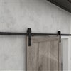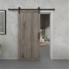 Add instant warmth and charm to any room of your choice with this distressed grey barn door. Inspired by the traditional herringbone pattern, this door will help to transform your space to farmhouse chic in a snap. Wrapped in a durable scratch resistant vinyl, this door does not require additional finishing or painting. Includes black metal installation hardware kit with ultra-quiet rollers and matching handle. Easy to install even for the novice DYI. This model measures 37 in (W) x 84 in (H) and has a thickness of 1.38 in. Colour finish: grey.
