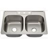 American Imaginations 22-in x 33-in Brushed Nickel Double Equal Bowl Drop-In Residential Kitchen Sink