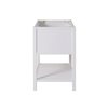 - Freestanding vanity is seated on the floor providing a functional design that doesn't overwhelm the space, distance from the floor to the bottom of the shelf: 3 1/2-in