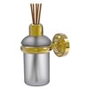 Add an interesting element to your room with this wall mounted scent stick holder. Off the counter where it can't be knocked over, this decorative holder has a removable glass container with a metal top to hold your scent sticks in use. It's designed to hold most standard size scent sticks. Made from solid brass, this decorative accessory will provide a lifetime of use.