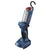 The Bosch GLI18 V-300N 18 V articulating LED worklight is a compact, lightweight and bright cordless light. It provides 10 hours of illumination with a 2.0 Ah SlimPack battery (not included) for example – delivering 300 minutes of runtime for every Amp hour (Ah) that the Bosch 18 V battery provides. This flexible worklight lights up a large work area, and it keeps the area lit for hours. The 300-lumen is bright, and it can illuminate a dark work corner. It weighs less than 11 Oz. (tool only, not including battery). The light folds for easy positioning and compact transportation, provides a hook for easy hanging and features six LEDs for bright 300-lumen illumination. This is a bare tool; battery and charger are sold separately.