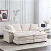 Clihome White Corduroy Modern Sofa with Ottoman