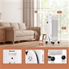 This oil-filled heater can improve your life quality and create a comfortable place in winter. This efficient radiator heater can warm your room in a short time. You can set the temperature and power as needed. Overheating and tip-over protection will offer you double safety protections and prevent accidents. You can have a sweet sleep due to the noise-free design. Conduction oil is packed and sealed, so you don't need to add extra oil. Front handle and universal casters ensure easy movement. The wire can be twined on the bracket to avoid mess. And the stable bottom design reduces toppling easily.