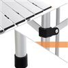 - Aluminum table top and foldable metal legs with non-skid rubber feet