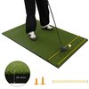 - The package includes a 5 ft x 3 ft golf hitting mat, 2 rubber tees and 2 golf alignment sticks, which makes this mat a great helper of indoor and outdoor golf practice